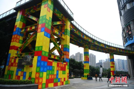 10月24日,重庆渝中区袁家岗出现一座“积木天桥”。该天桥表面被装饰成了乐高积木样式,五颜六色的天桥吸引不少路人观看。据悉,该天桥是袁家岗轻轨站通往中新城上城和重医附一院的过街天桥。陈超 摄
