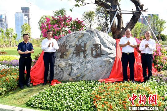 中新网深圳6月28日电 (郑小红 徐晓美)深圳前海深港现代服务业合作区庆祝香港回归20周年系列活动—紫荆园开园及一批项目开通、揭牌仪式28日在前海举行。 此次集中开通和揭牌的项目内容包括:紫荆园开园,前海深港基金小镇揭牌,前海自贸大厦正式亮灯,十一号路、前湾四路市政道路开通,前海环境和绿化“双提升”工程取得阶段性成果,桂湾一变电站投入使用。 ![]() 6月28日,前海深港现代服务业合作区庆祝香港回归20周年系列活动之一,前海紫荆园开园暨深港基金小镇举办揭牌仪式。深圳市委常委、前海蛇口自贸片区管委会主任田夫,前海管理局局长杜鹏等出席揭牌仪式。 陈文 摄