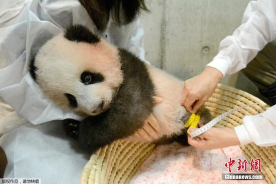 旅日大熊猫“香香”体检 紧抱工作人员萌态十足