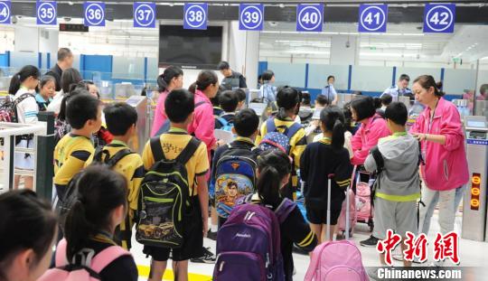 中新网深圳10月30日电 (郑小红 黄俊生)记者30日从深圳皇岗出入境边防检查站获悉,经前期紧张筹备和试行,该站在皇岗口岸正式启用跨境学童电子标签查验模式,进一步提高跨境学童查验效率,保障学童安全快捷出入境。 跨境学童在皇岗口岸出境大厅学童查验专区安全候检。 黄俊生 摄