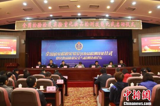 中新网广州12月20日电 (记者 郭军)19-20日,国家进出口化妆品检测实验室联盟在广州举办全国检验检疫实验室化妆品检测技能比武,来自全国29个直属局41个检验检疫实验室的73名选手参与竞技。这是全国检验检疫系统首次举办化妆品检测技能比武。 比武现场